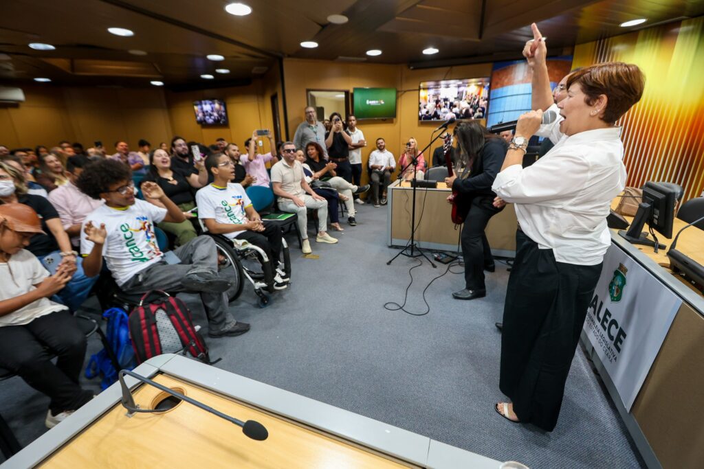 A coordenadora-geral do Alcance, deputada Jô Farias (PT), vibrou com os números do ano de 2025, totalizando 94 núcleos municipais e mais de 10 mil jovens inscritos, com 1.116 aprovações em instituições públicas, como Uece, UFC e IFCE.