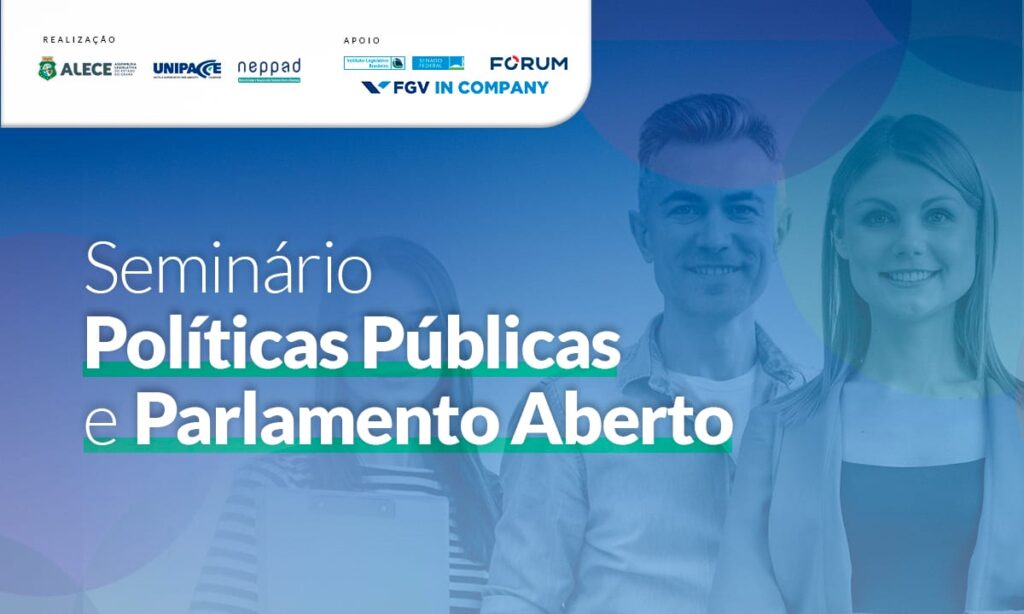A Assembleia Legislativa do Estado do Ceará (Alece) abre as inscrições para o Seminário de Políticas Públicas e Parlamento Aberto. De iniciativa da Escola Superior do Parlamento Cearense (Unipace) e do Núcleo de Estudos e Pesquisas sobre Parlamento Aberto e Democracia (Neppad), o evento acontece no dia 23 de maio, das 8h às 17h, no auditório Murilo Aguiar, no anexo I da Alece.