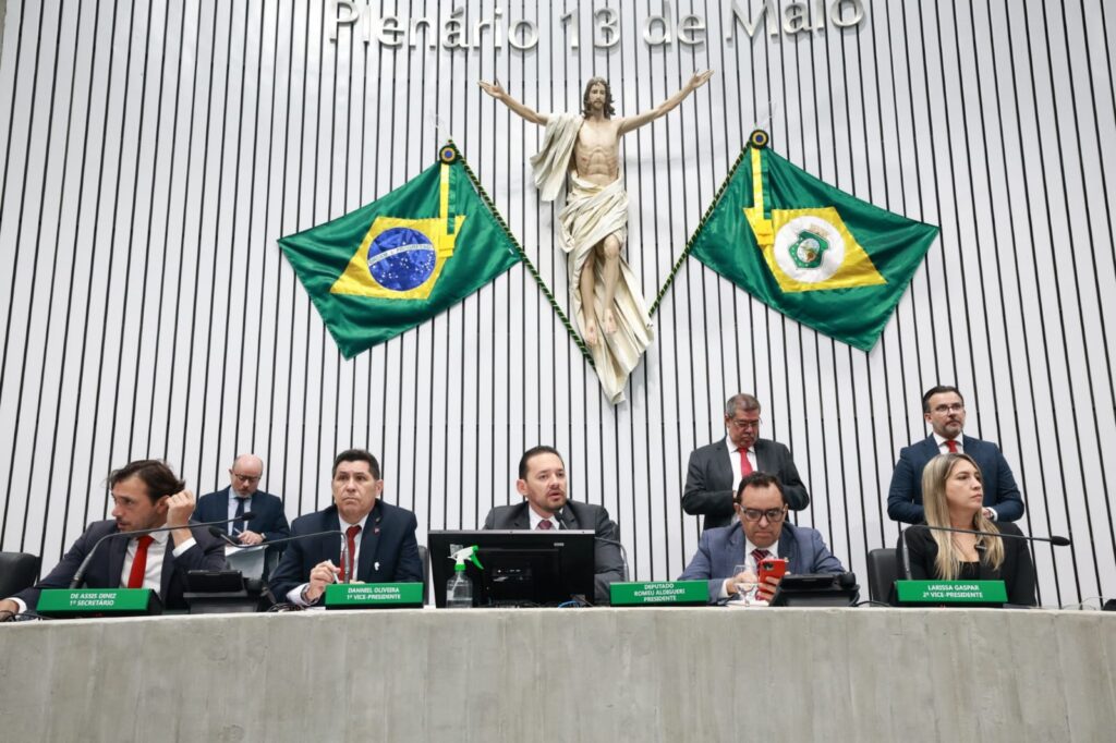 A Assembleia Legislativa do Estado do Ceará (Alece) aprovou, na manhã desta terça-feira (05/08), com 31 votos favoráveis, um manifesto em favor da economia e do povo do Ceará em resposta à imposição de taxa de 50% do governo norte-americano aos produtos brasileiros. O documento, de autoria do presidente da Casa, deputado Romeu Aldigueri (PSB), foi lido pelo presidente em exercício da Alece, deputado Danniel Oliveira (MDB).