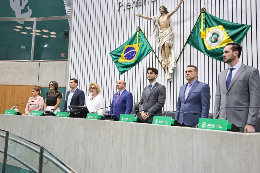 Além de Sérgio Aguiar (PSB), compuseram a mesa da sessão solene os deputados Pedro Matos (Avante), Marcos Sobreira (PSB), Simão Pedro (PSD) e Guilherme Bismarck (PSB); a secretária dos Direitos Humanos do Estado do Ceará, Socorro França; a prefeita de Redenção, Selma Marinho, que representou todos os municípios homenageados; e a jornalista Silvana Frota.