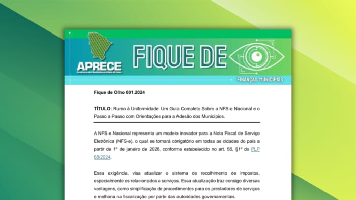 Neste sentido, a Aprece preparou e encaminhou aos municípios cearenses um material completo, com informações e orientações técnicas; além de um passo a passo didático sobre a adesão à NFS-e Nacional pelas gestões municipais.