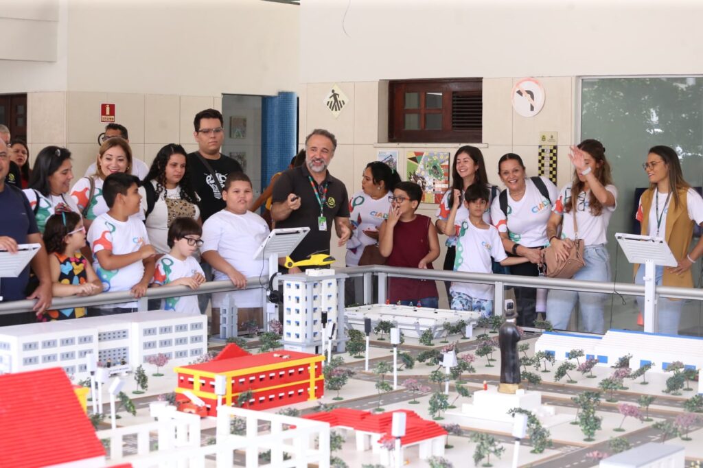 O passeio seguiu com a apresentação das vias de trânsito e sinalização a partir de uma grande maquete simulando uma cidade e um passeio de bicicleta e carrinhos elétricos em um minicircuito que contempla todas as regras de trânsito.
