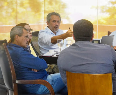 O governador Elmano de Freitas, ao lado do secretário Max Quintino, convocou a secretária da Saúde, Tânia Coelho, e o superintendente de Obras Públicas (SOP), Valdeci Rebouças, para tratar sobre obras importantes para garantir a oferta do serviço de saúde de qualidade aos cearenses.