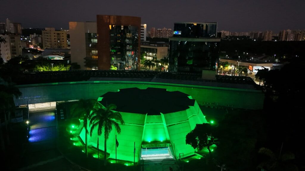 A fachada do Plenário 13 de Maio, da Assembleia Legislativa do Estado do Ceará (Alece), estará, durante todo o mês de julho, iluminada em tonalidade verde. A iniciativa ocorre em apoio à campanha Julho Verde, que é dedicada à conscientização, prevenção e combate ao câncer de cabeça e pescoço.